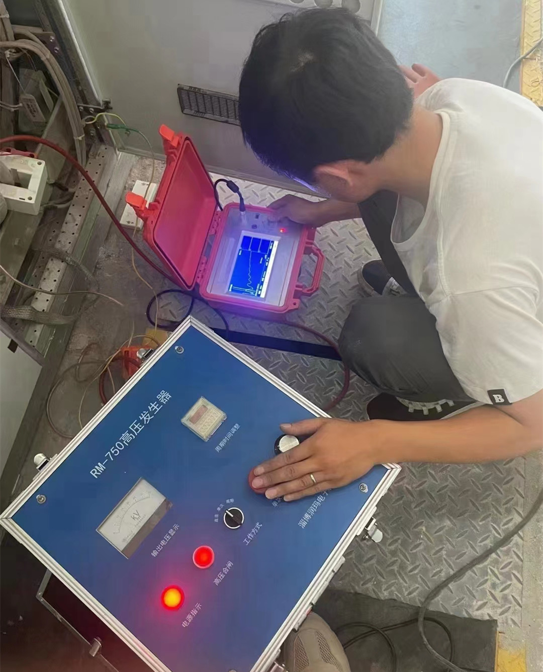 確定電纜全?后,??壓發?器多次打壓后查找近端有故障波形顯示的情況。?定點儀在故障端進?定位。